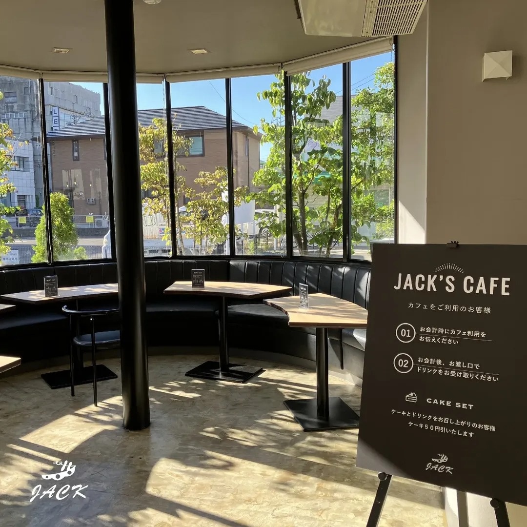 明るく広いカフェスペース、奥にはソファー席もございます。